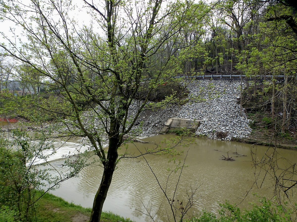 The dam contributes to erosion that has been washing out the base of Main Street, and it has had a negative effect on the creek’s aquatic life, partly because it makes it impossible for fish to travel upstream to spawn. The creek at the dam has been undercutting the base of a hillside during flooding like a “grinding wheel” in an area that supports Main Street, said Joseph Szczur, district director of the state Department of Transportation.