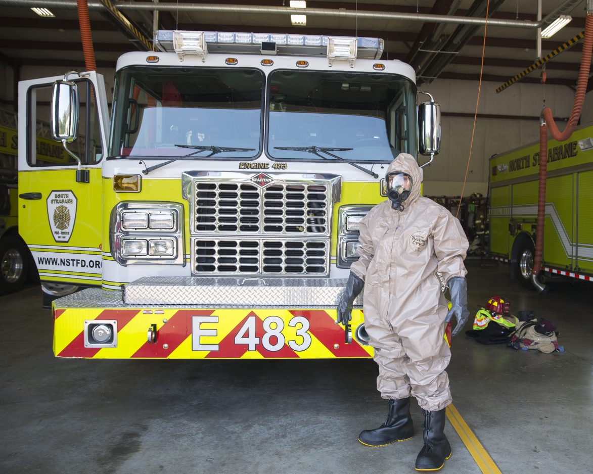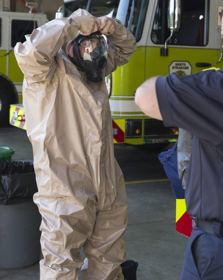 Fire vehicles that respond to medical calls have been certified as advanced life-support units and contain personal protective equipment for the firefighters, such as gloves and masks. There also are protective body suits available, and full face masks.