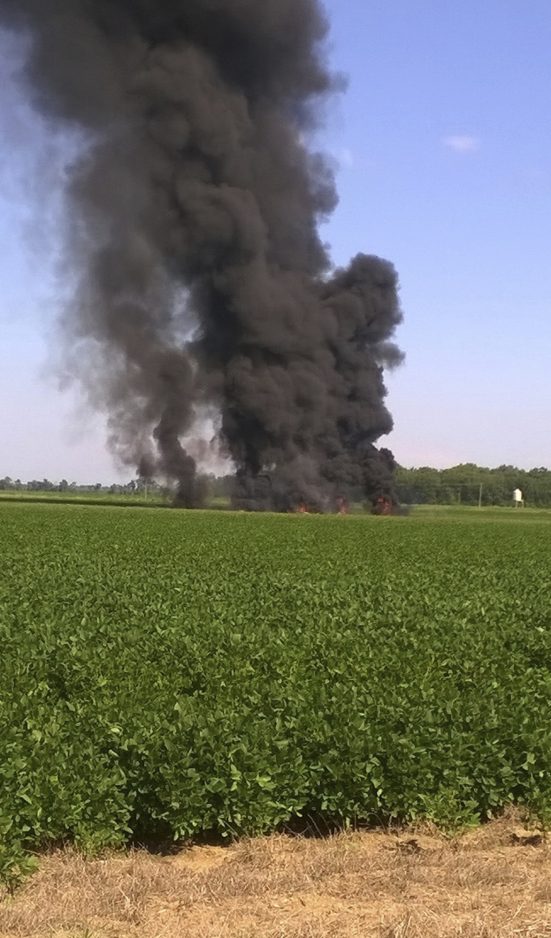Andy Jones said he was working on his family’s catfish farm just before 4 p.m. when he heard a boom and looked up to see the plane spiraling downward with one engine smoking.