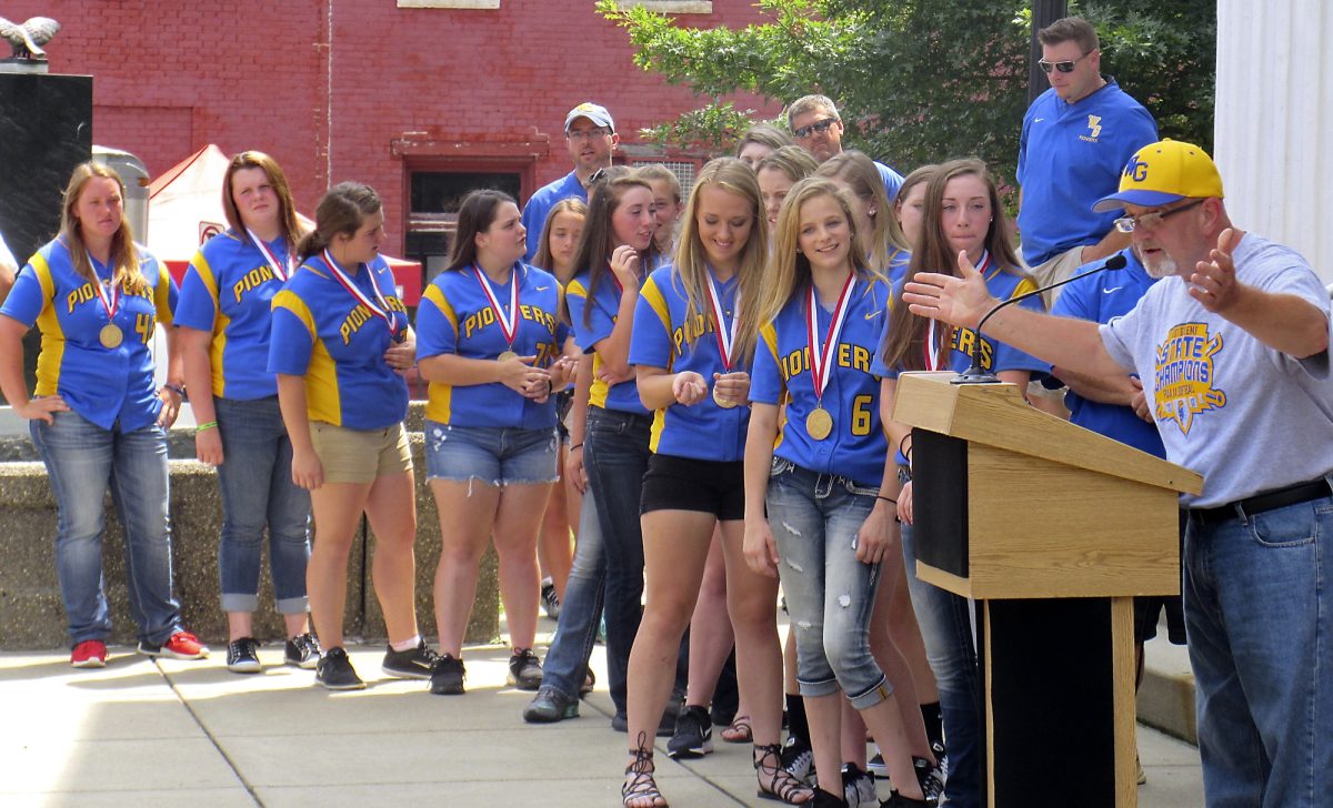 West Greene history teacher Terry Tanner introduced the winning athletes and all were given certificates from county and state officials congratulating them on their achievements, including the softball team that won the state title June 16.