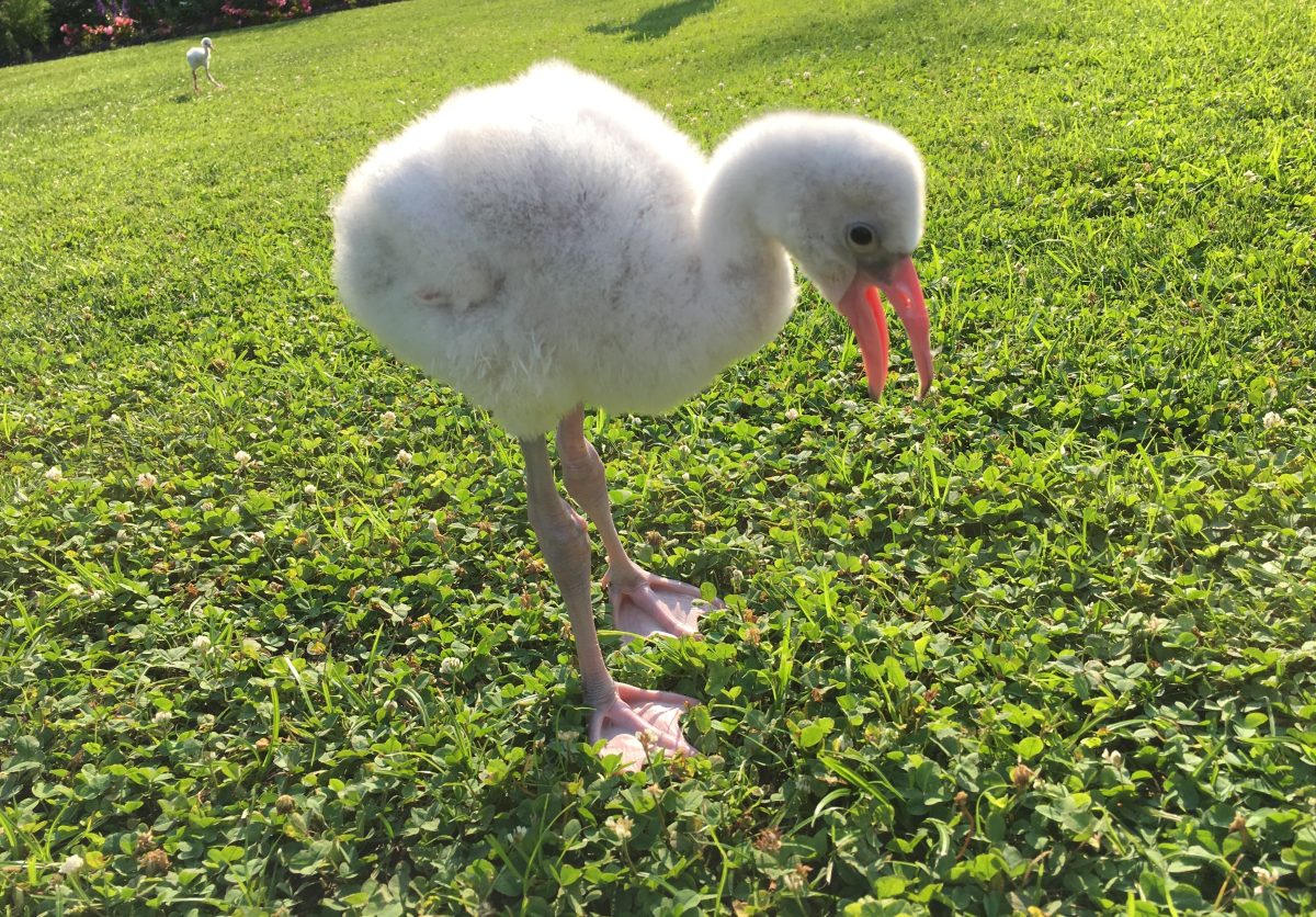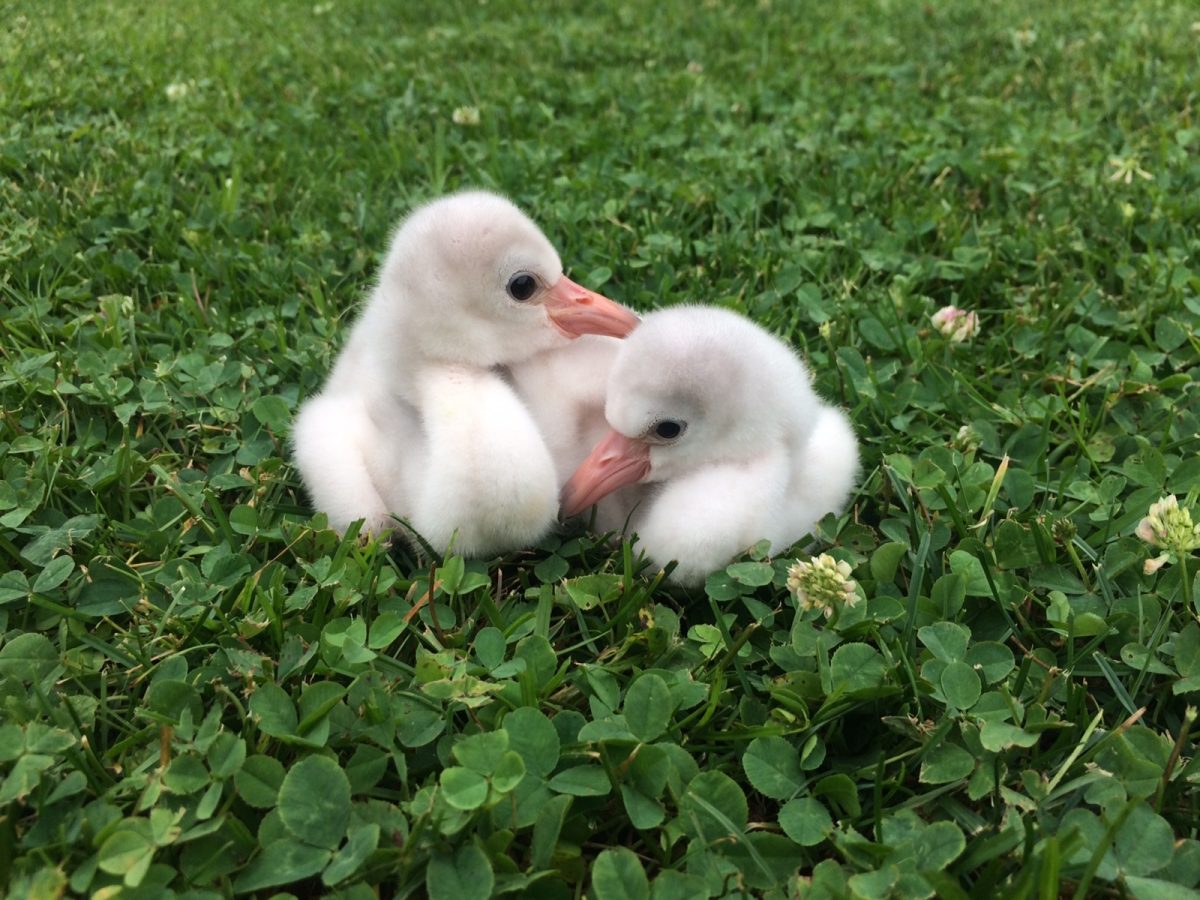 The flamingo chicks were hatched between June 25 and July 9 and are being hand raised at the aviary to act as “educational ambassadors for their species,” according to an aviary news release.
