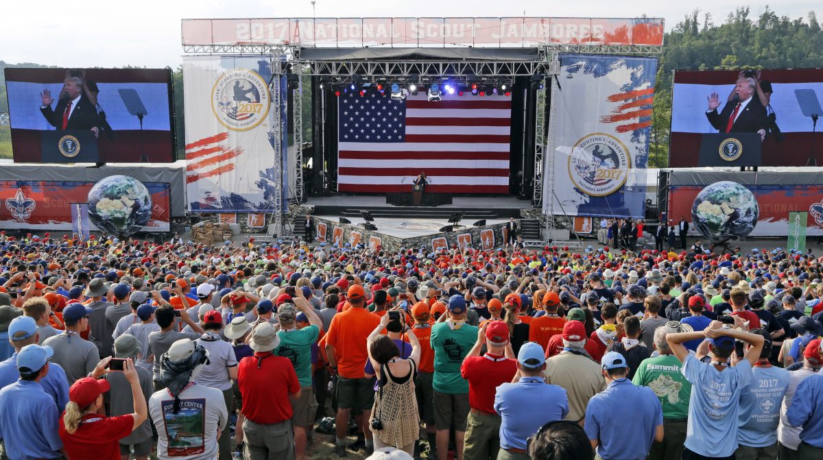 Trump noted from the podium that Obama did not personally attend either of the two national Jamborees during his tenure. (Obama did address the 2010 gathering by video to mark the Scouts’ 100th anniversary. The Jamboree is typically held every four years.)