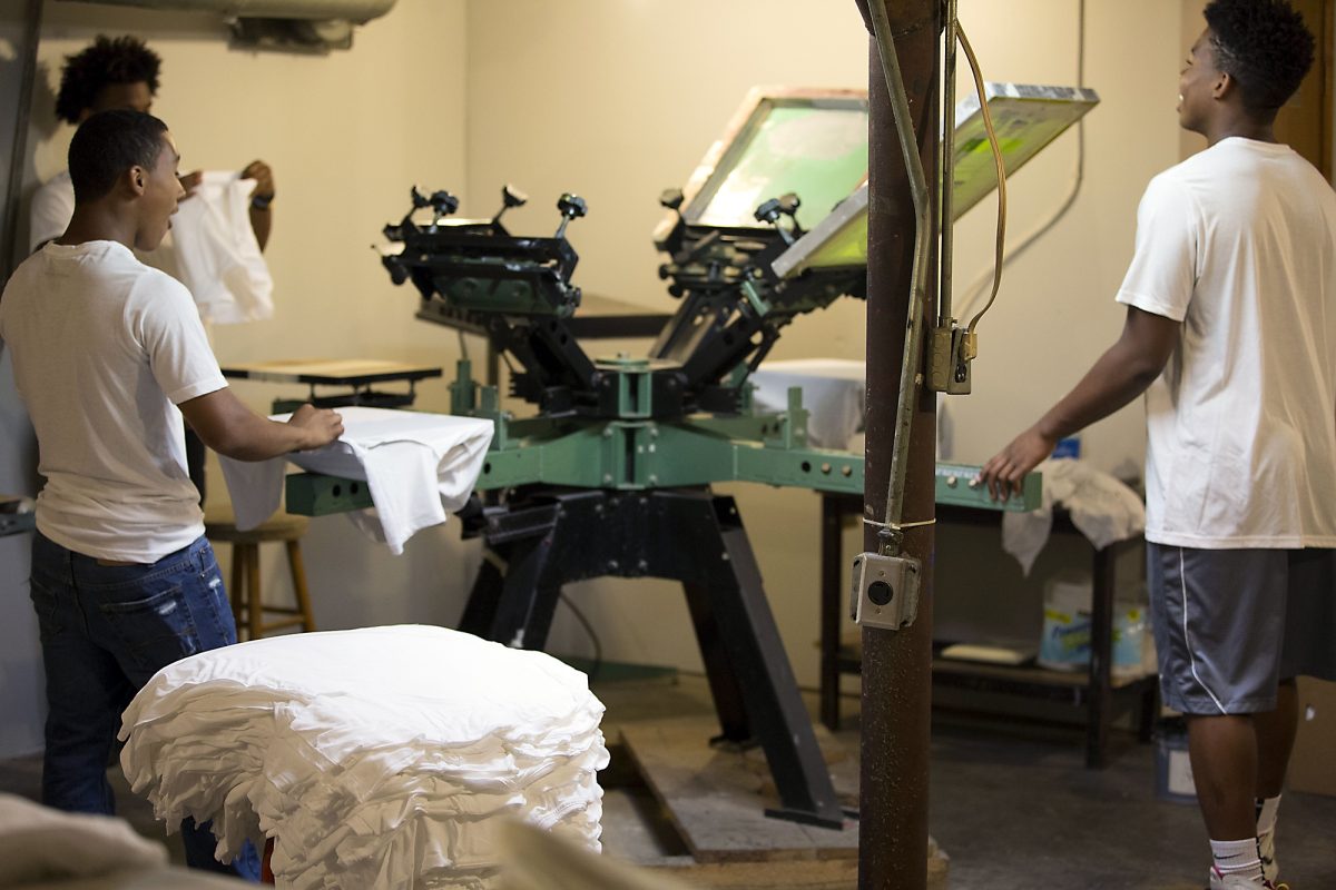 About three years ago, James bought and rehabbed a building in Brownsville, and employed some local youth to design and market a T-shirt that showed the concept of how we are all connected globally. That one T-shirt idea turned into two more renovated buildings and morphed into a business that employs and teaches skills to youth. The bustling business now has about 14 young people learning skills such as marketing, graphic design and shipping.