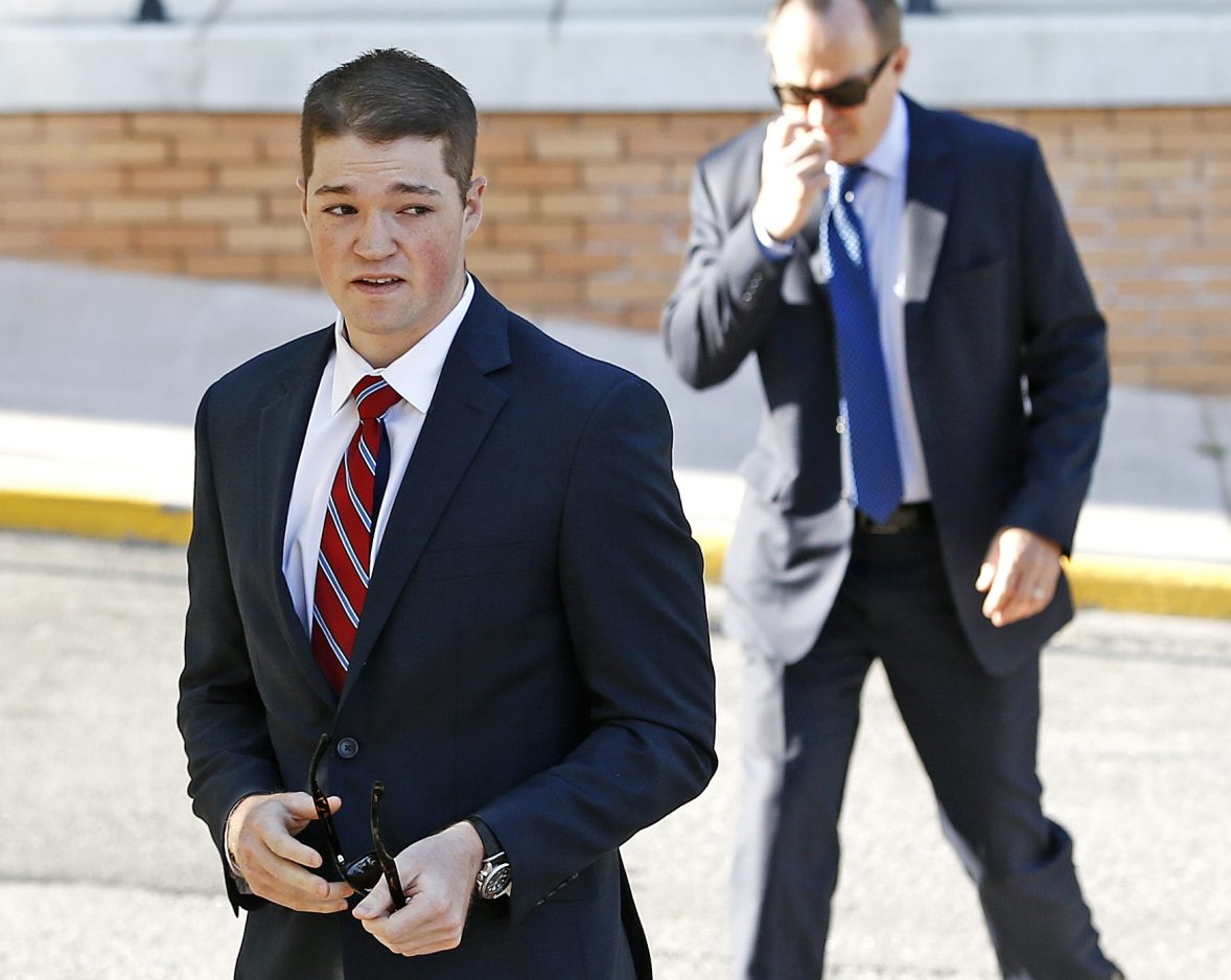 Ryan McCann, arrives for his preliminary hearing on charges related to the hazing death of Timothy Piazza at Penn State’s Beta Theta Pi fraternity at the Centre County Courthouse in Bellefonte Monday.