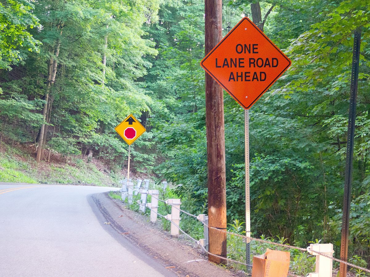 Members and guests of Valley Brook Country Club have been inconvenienced lately by the narrowing of Hidden Valley Road to one lane for a short stretch near the club entrance as the township addresses a landslide issue.