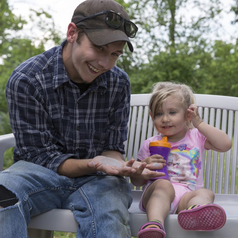 “At first it was just overwhelming. I had so many emotions. I was scared but I was also happy. I had no intentions of not being a part of my daughter’s life,” Scicchitano said recently as he and his daughter, Arielle, 2, drew with fat chalk pieces on the sidewalk of his mother’s Scenery Hill home on a hot, sunny day.