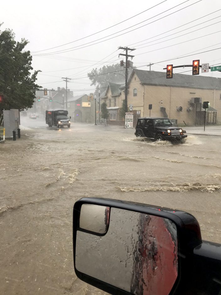 McMullen said several vehicles were stranded in flood waters on West Maiden Street, and water levels approached four feet deep in the 300 block of Chestnut Street.