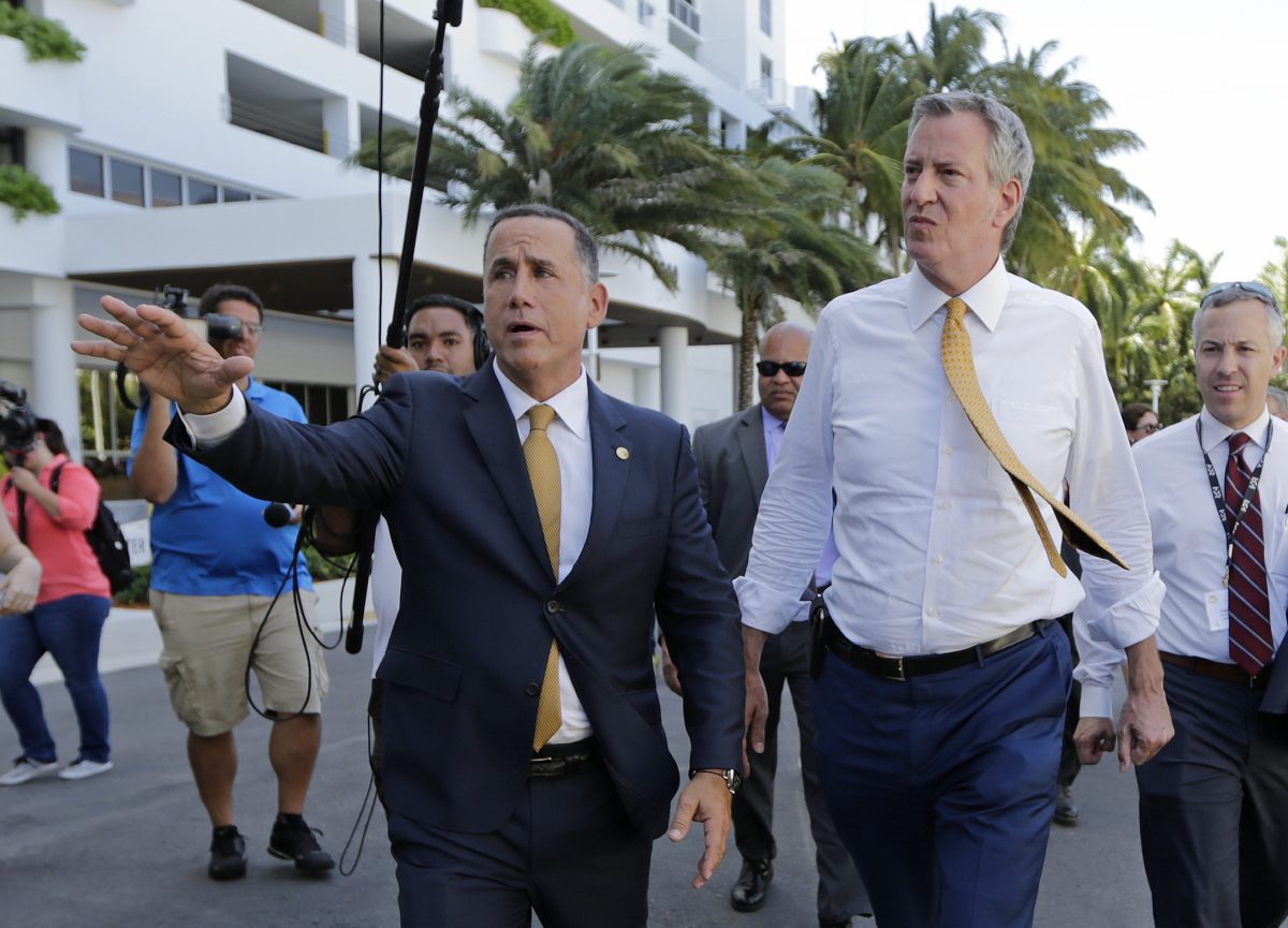 De Blasio joined Miami Beach Mayor Philip Levine on a tour of a South Beach neighborhood where the city raised streets and installed pumps to send up to 120,000 gallons of water a minute flowing back into Biscayne Bay. The project – aimed at keeping the island city dry amid rising seas – has received national attention, but Levine noted not all communities can afford to fight climate change without state or federal funding.