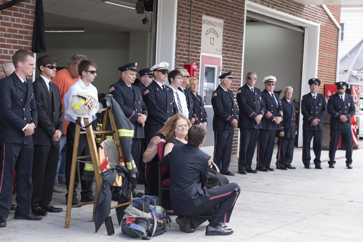 Friends and family mourn the loss of McDonald Volunteer Fire Department’s Fire Chief Scott Albertini in McDonald on Monday, June 26.