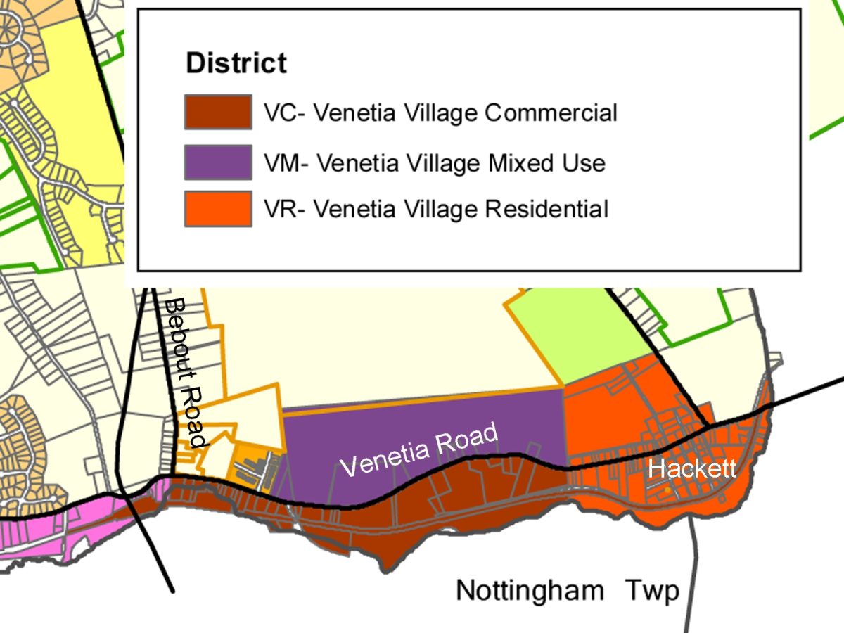 “In Venetia, the zoning is geared around maintaining the character of the area,” township planning director Ed Zuk said. “You see homes close together and close to the road. You don’t see big, tall buildings in the Venetia-Hackett area.