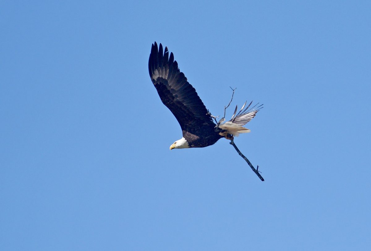 About a month ago, Buswell saw posts on local social media about people seeing eagles at Canonsburg Lake. He did an internet search and found an Observer-Reporter photo from April of one mid-flight, a twig in its talons. The next morning, he drove to the lake and almost immediately, spotted not one, but two, of the birds of prey.