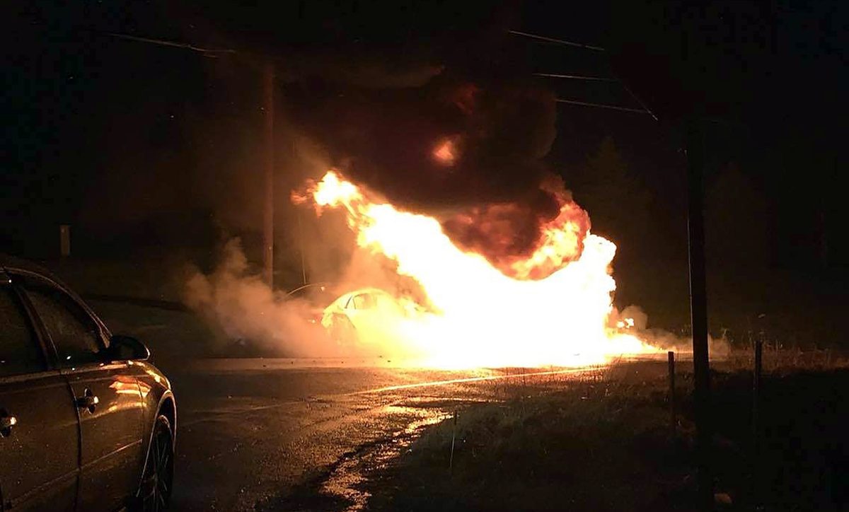 A Jeep ended up on its side and caught fire as did the second vehicle, said Muse fire Chief Paul Smith. Passersby got the victims out of the vehicles, the chief added.