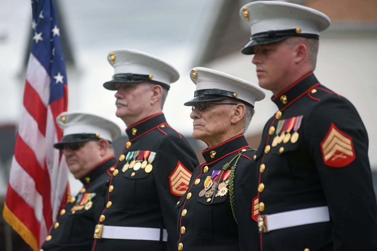 None of the estimated 80 march survivors appeared in Wellsburg Friday, but veterans of various ages and branches – and their descendants were on hand. The event began outside ADBC Museum, housed inside Brooke County Public Library, slightly above the banks of the Ohio River. It continued with speeches and a march up Charles Street, and ended with a 21-gun salute, taps and a wreath-laying.