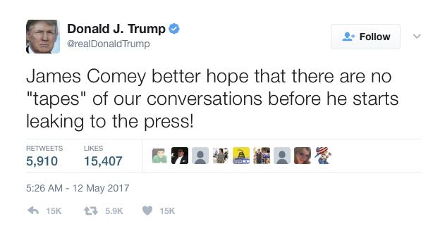 The president tweeted early Friday, “James Comey better hope that there are no ‘tapes’ of our conversations before he starts leaking to the press!”