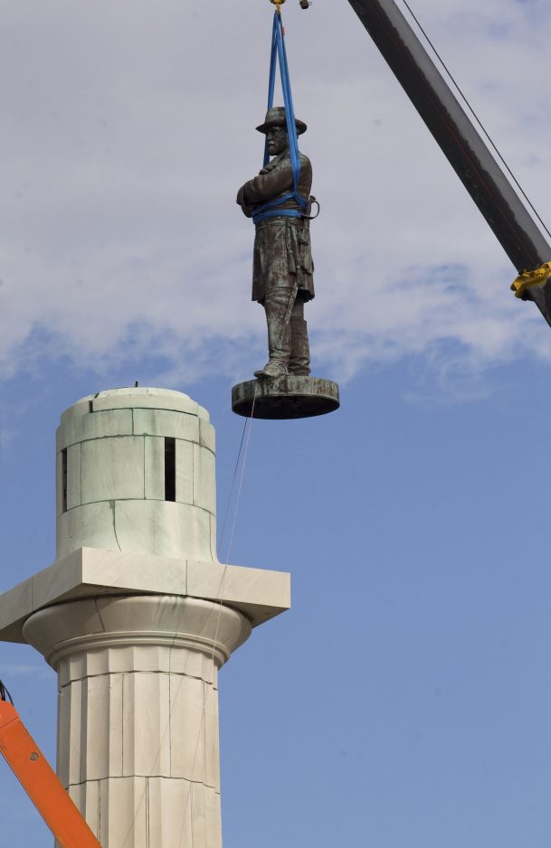 The monuments included one stone obelisk commemorating a rebellion against a Reconstruction-era government and overtly commemorating white supremacy. The others are bronze images of Confederate President Jefferson Davis and Gens. Robert E. Lee and P.G.T. Beauregard.