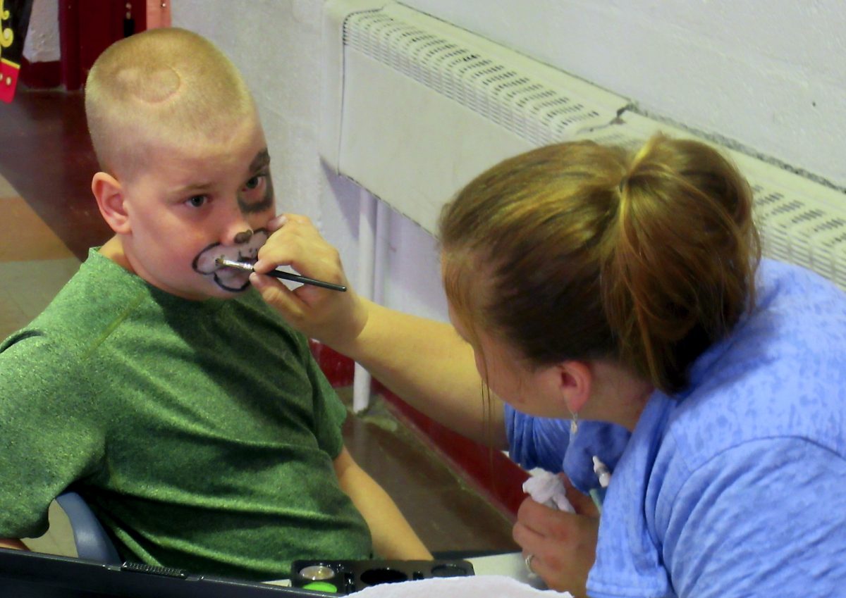 Stacie Bator, a social worker at Greene County’s Intermediate Unit 1 in Franklin Township, paints a dog’s face on student Jesse Muntan, 12, during the school’s carnival Friday celebrating the end of the school year.