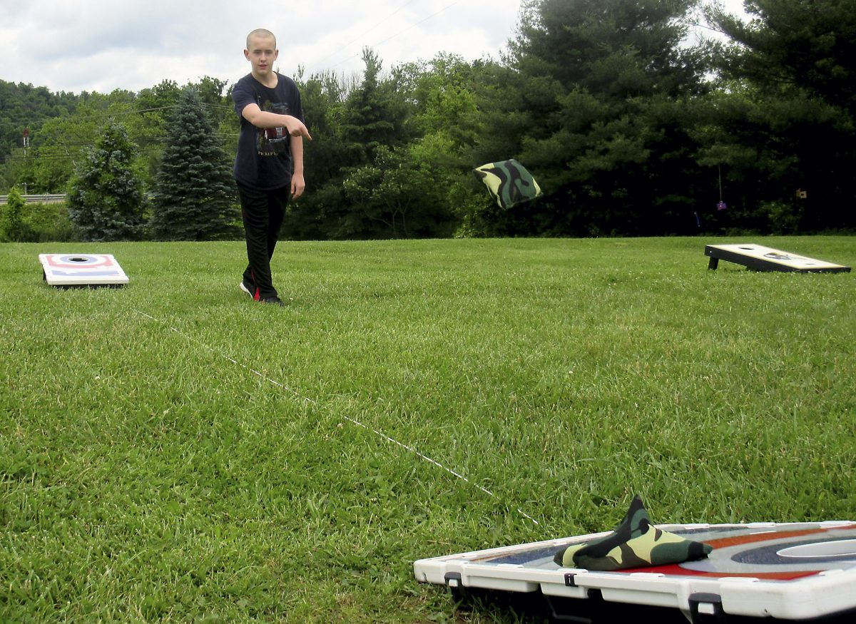 Justus Joliffe, 14, a student at Greene County’s Intermediate Unit 1 in Franklin Township, plays cornhole during the school carnival Friday.