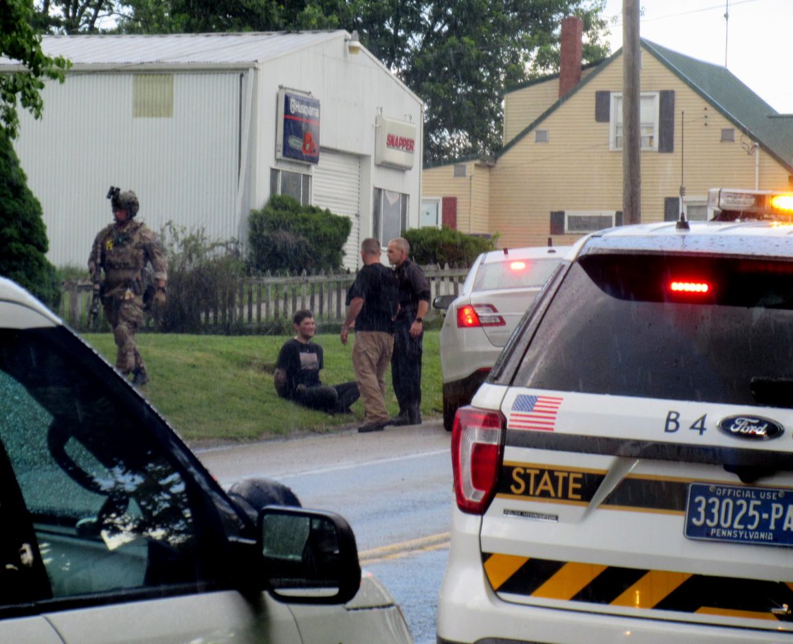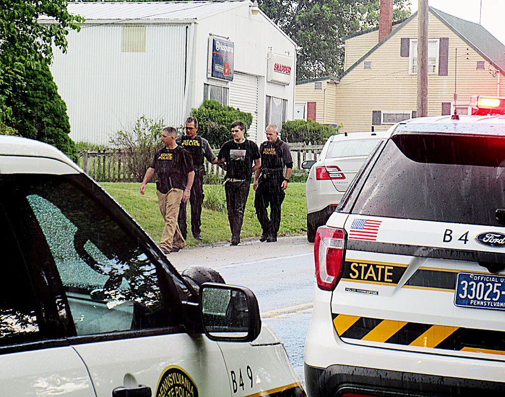 A state police specialized response team wearing paramilitary uniforms and body armor surrounded the house, thinking someone was still inside. Three booms were heard near the home around 4:30 p.m. as state police closed in, but no activity near the house was seen immediately afterward.