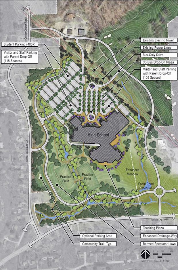 Proposed site map of the Peters Township School District portion of the former Rolling Hills Country Club property
