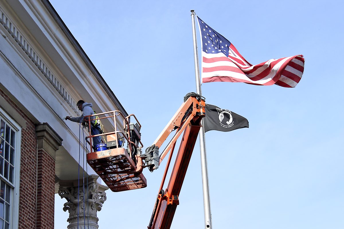 Jesse Fiske Sr., who owns the company contracted to make repairs, said as they were working on pillars surrounding the clock tower, they realized the wood rotted out. Fiske said they removed the pillars, which he said looked as if they may be original to the building, to construct new fiberglass pillars.