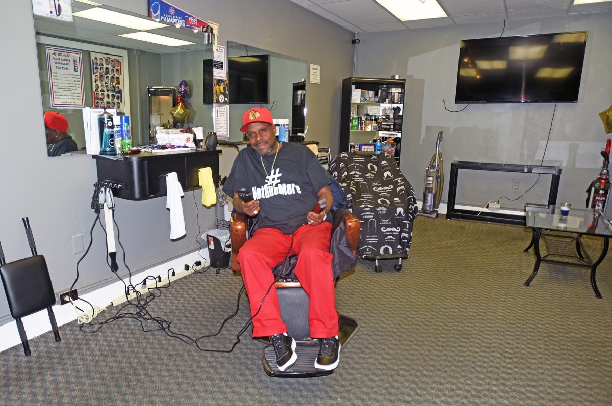 In the Montgomery Building, the shop was home to six barber chairs, a tanning bed and a nail station with a pedicure chair. Now, it has only two hair-cutting chairs used by Layton and Embaugh.