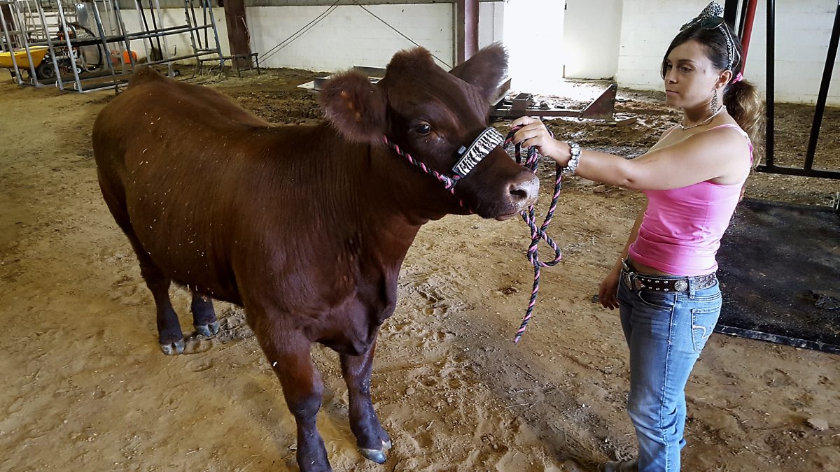 Kourtney Wilson of Jollytown takes her cow, Ruby, for a walk around the 4-H fairgrounds barn in 2016.