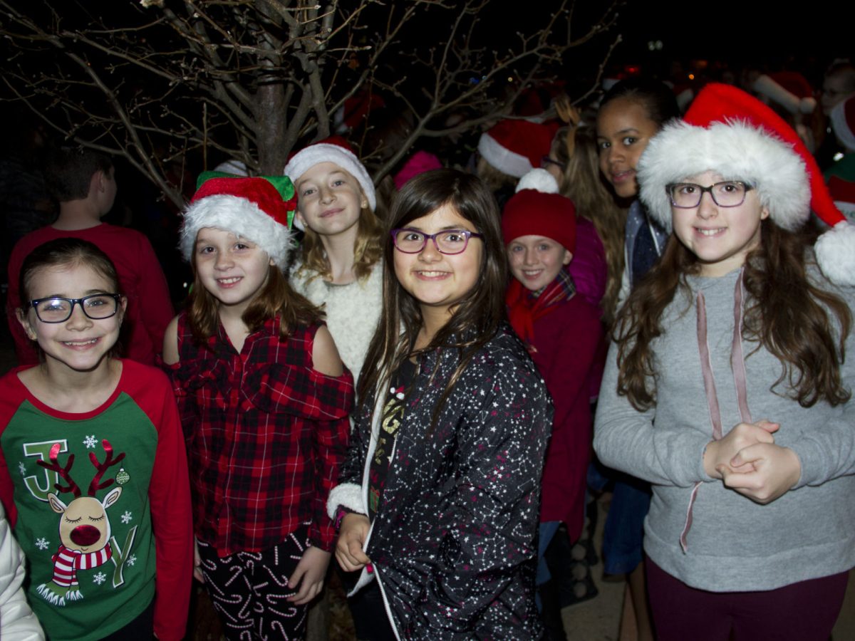 Those in attendance enjoyed a rendition of holiday favorites by McMurray Elementary School students, directed by Ray Cygrymus and lined up in front of Peters Township Public Library.