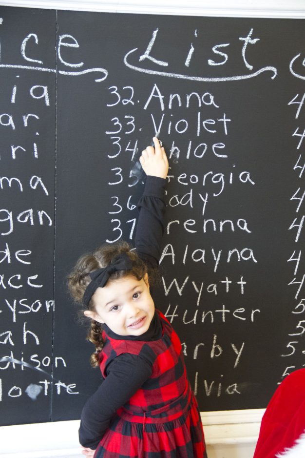Violet Cecchini points to her name on Santa’s “nice” list.