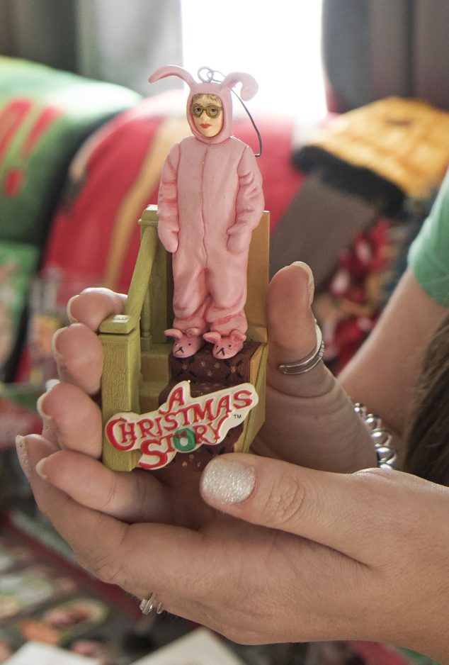 Rachel Greenlee holds one of her favorite ornaments from her “A Christmas Story” collection at her home in Clarksville.