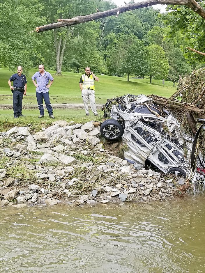 More than 16 cars were swept away by Mclaughlin Run in Upper St. Clair during Wednesday night’s flooding.