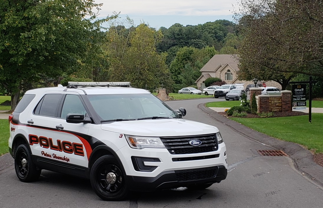 A Peters Township police cruiser blocks Marlboro Drive where state police are leading the investigation into two bodies that were found inside one of the homes Sept. 23.