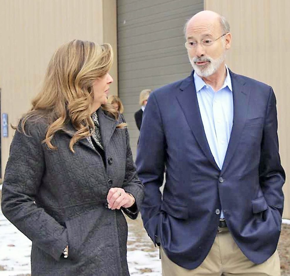 Gov. Tom Wolf, left, tours the Ruff Creek training center Thursday with the facility’s executive director Clemmy Allen.