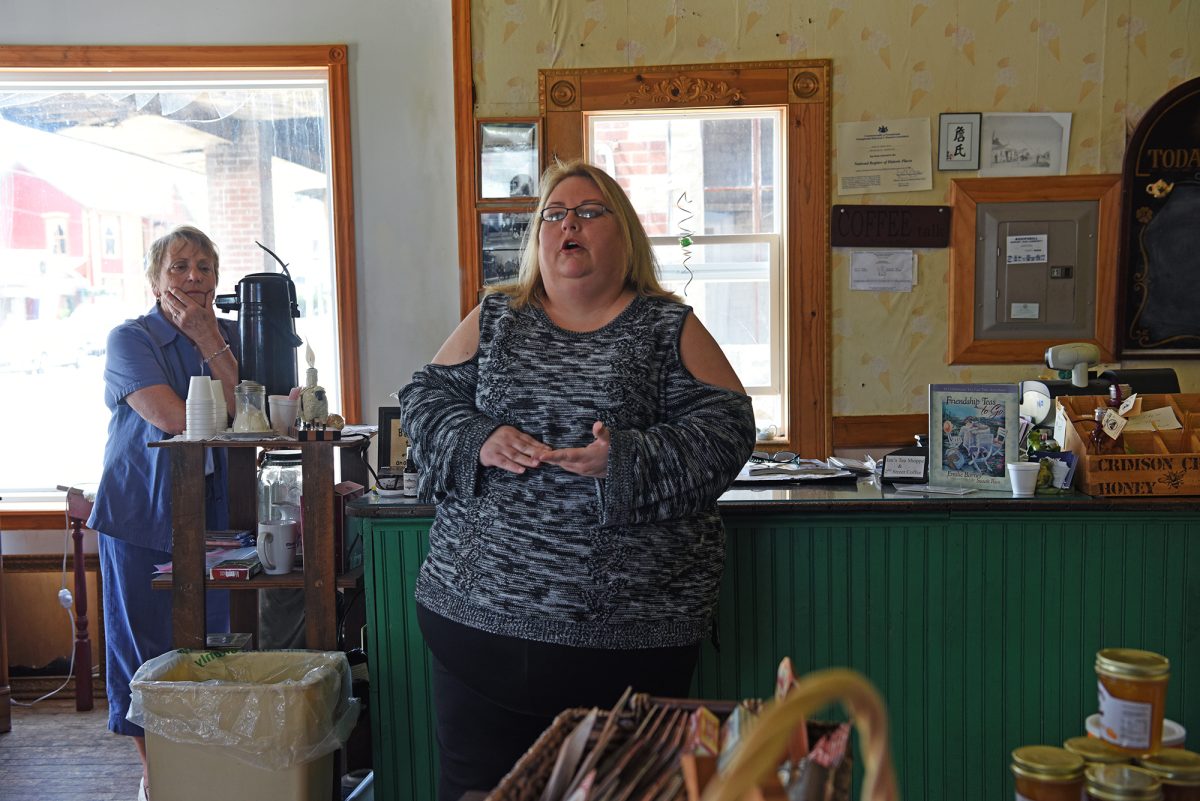 Renee Rudnisky, vendor chair for the Scenery Hill National Road Committee, thanks those in attendance Wednesday at Jan’s Tea Shop in Scenery Hill.