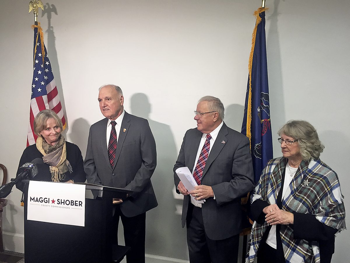 Larry Maggi and Harlan Shober made the announcement at the county party committee’s headquarters on East Wheeling Street.