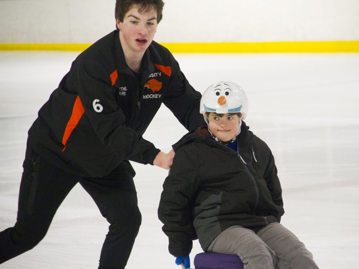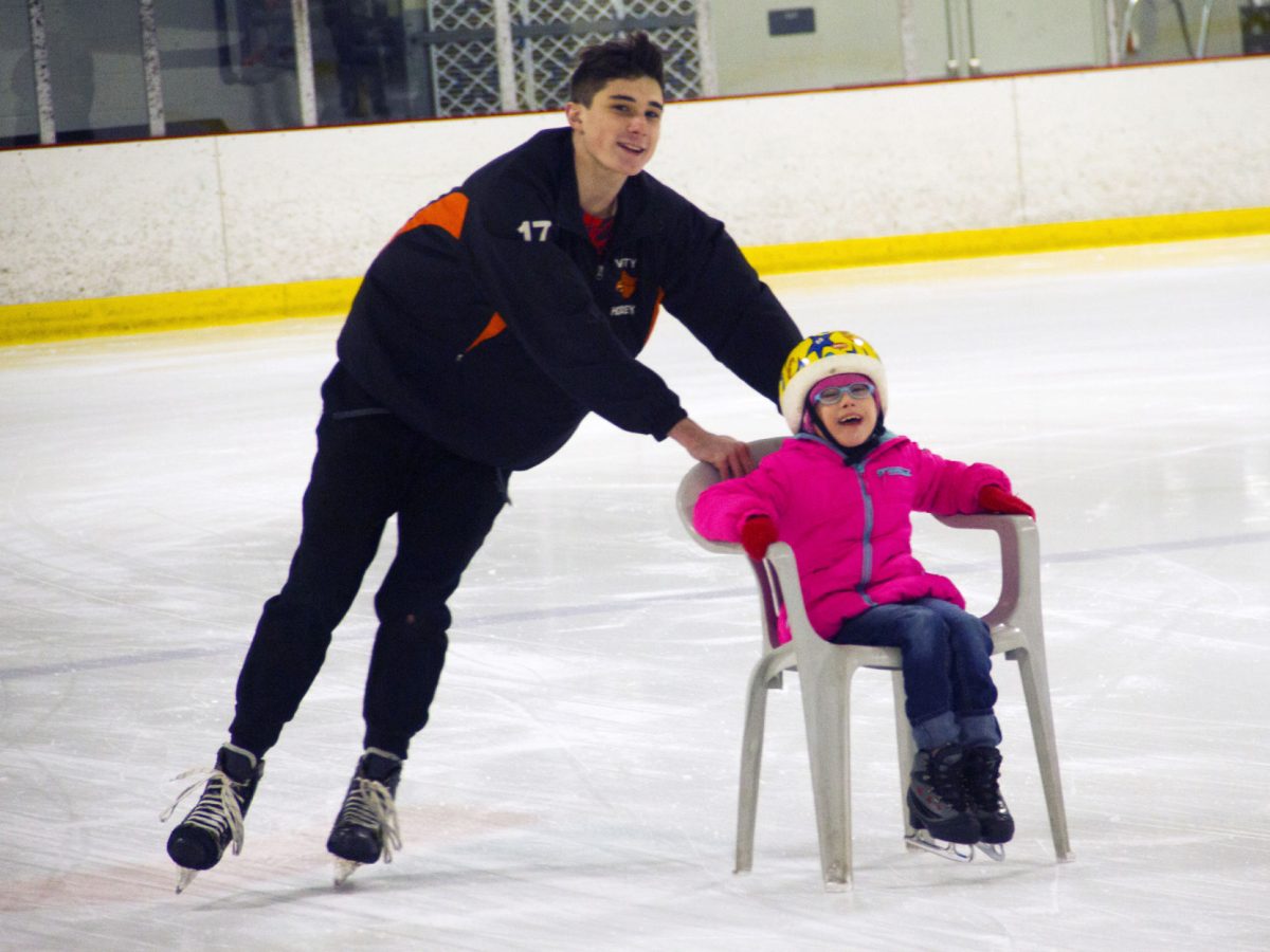 For 19 years, adaptive physical education teacher Linda Graney and hockey head Coach Jim McVay have arranged for his players to participate in an activity during which they pair up with students who have special needs for a good time on the ice for everyone.
