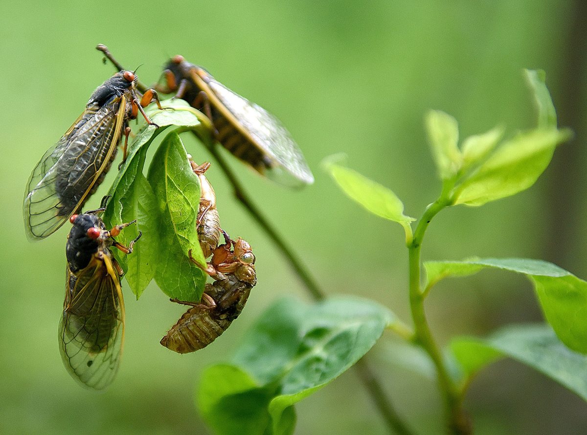 The most visible manifestation of the cicadas is their singing. It’s all about attracting a mate. While it was commonly believed that only male cicadas engage in a mating call, Cooley said researchers now believe that male and female cicadas engage in a “duet” before they mate. A female cicada can lay hundreds of eggs in twigs, and this can be harmful to young trees. It is recommended that garden fabric be used to protect them.