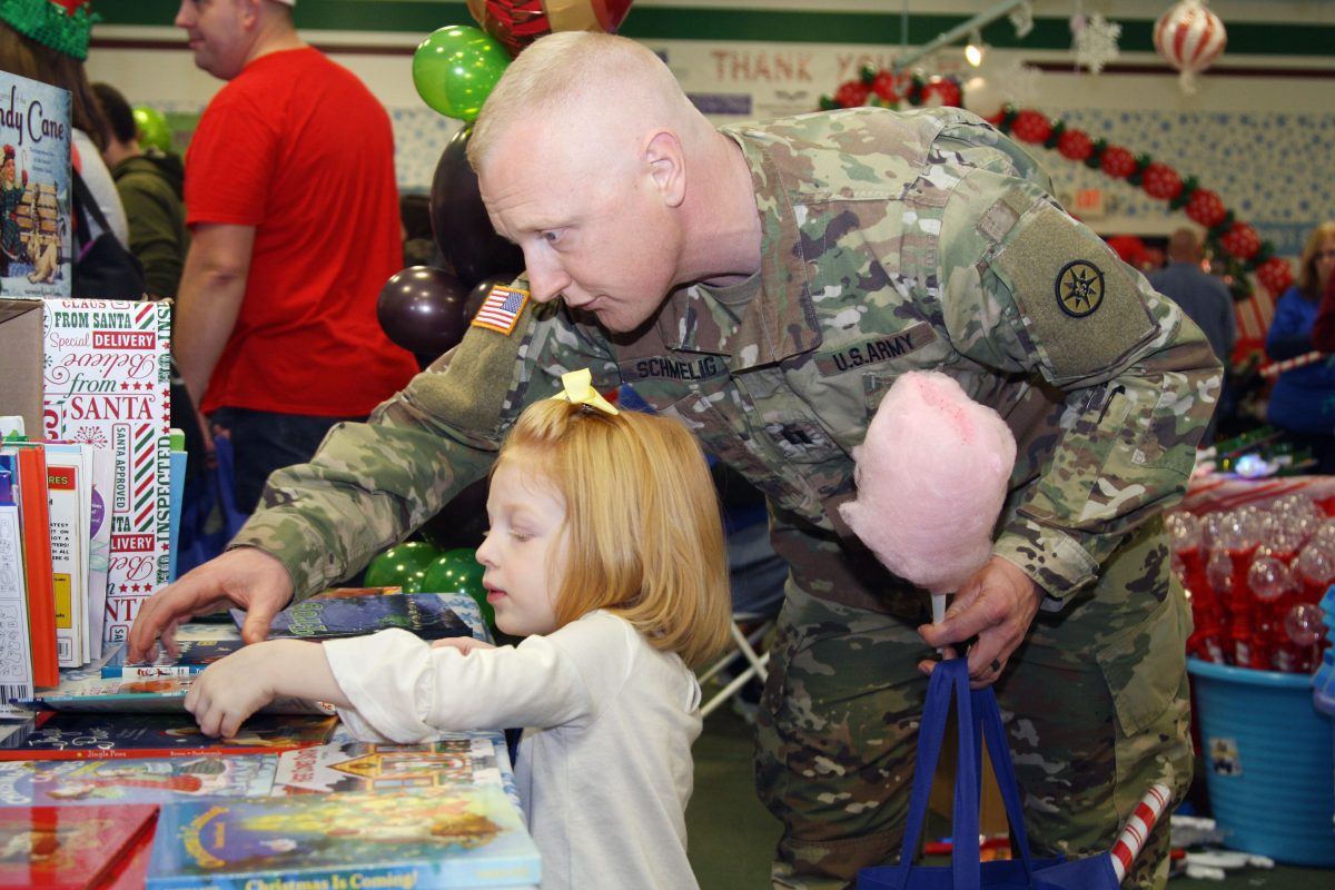 The civilian children – or “elves” – are paired with a military child, and they purchase gifts for the child using money they’ve saved. The elves wrap the gifts, and watch the child open the gifts at the carnival.