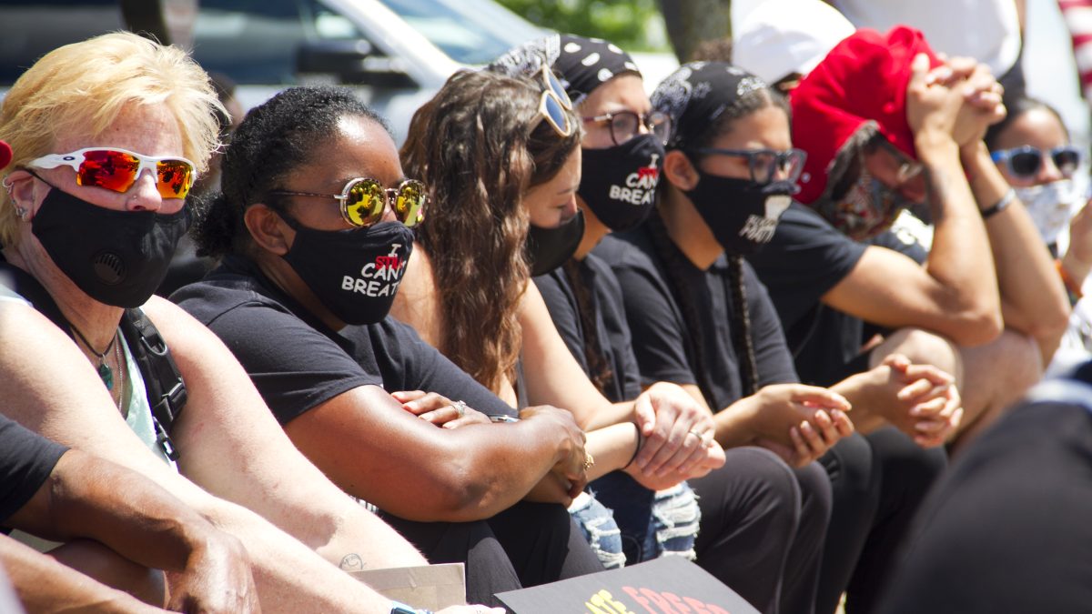 Participants observe eight minutes, 46 seconds of silence at a peaceful protest Saturday in Canonsburg.