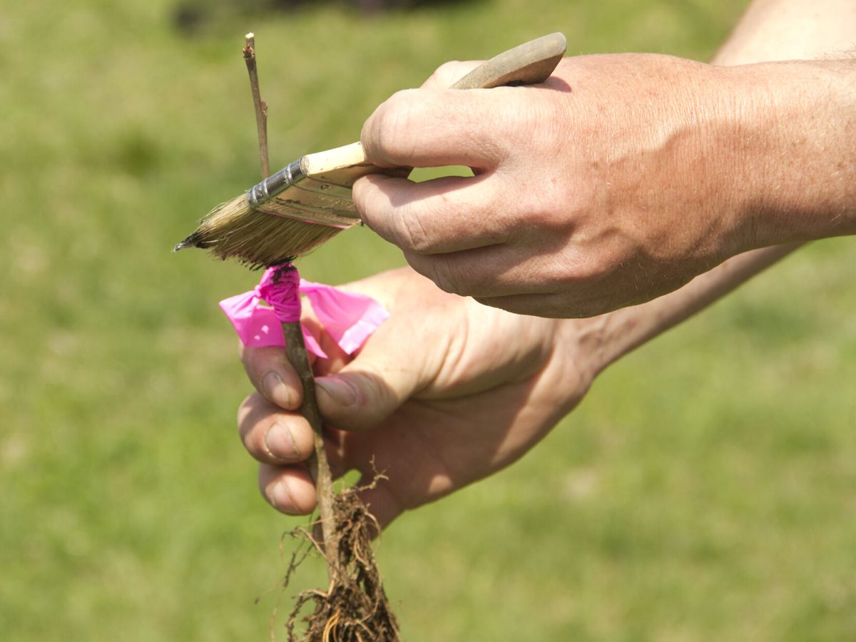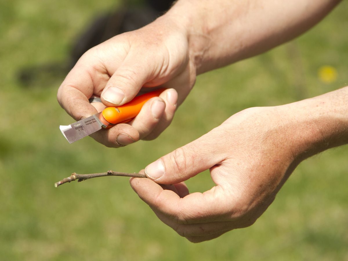 Using a seriously sharp stainless-steel knife made especially for grafting, Kubiak showed how to attach budding branches from the apple tree to rootstock, the part that is planted.