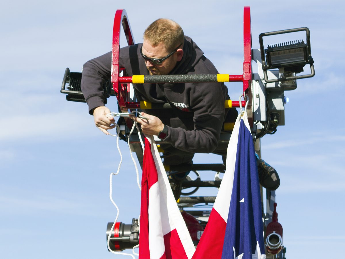 The U.S. flag flies from atop Muse Fire Department’s Truck 29.