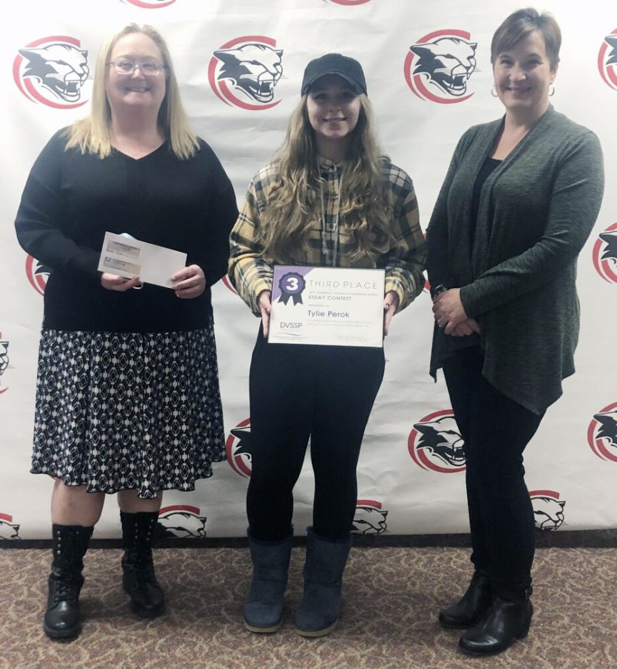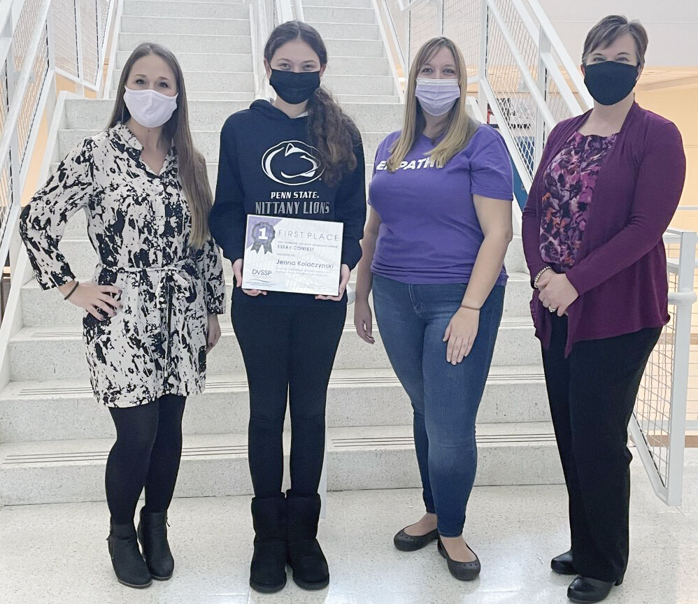 The Domestic Violence Services of Southwestern Pennsylvania announced the winners of its first essay contest, held during Domestic Violence Awareness Month in October. More than 20 students from school districts in Washington, Greene and Fayette counties submitted 250-word essays during the contest. The three winners – Jenna Kolaczynski and Nikki Zhang, juniors at Canon-McMillan High School, and Tylie Perok, a junior at Charleroi Area High School – were awarded cash prizes and certificates of recognition.