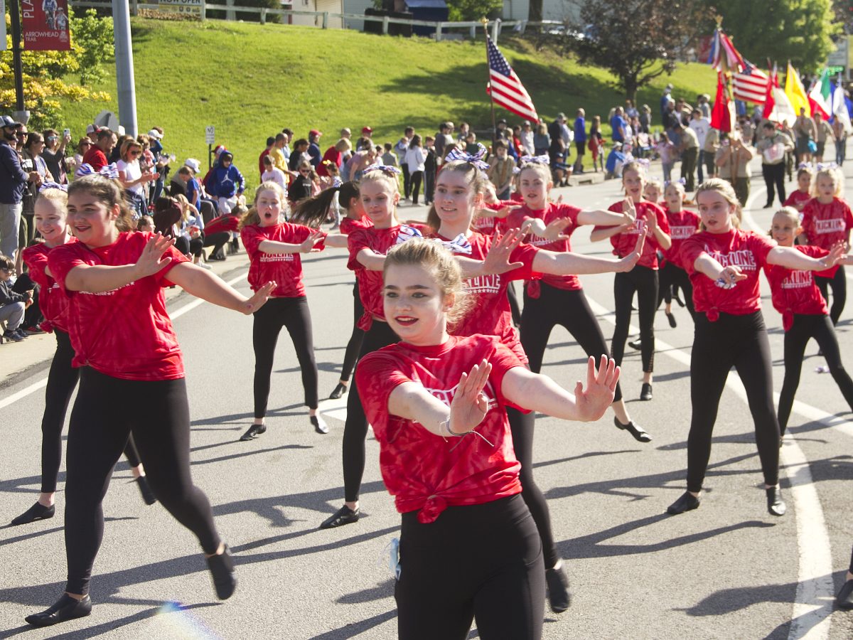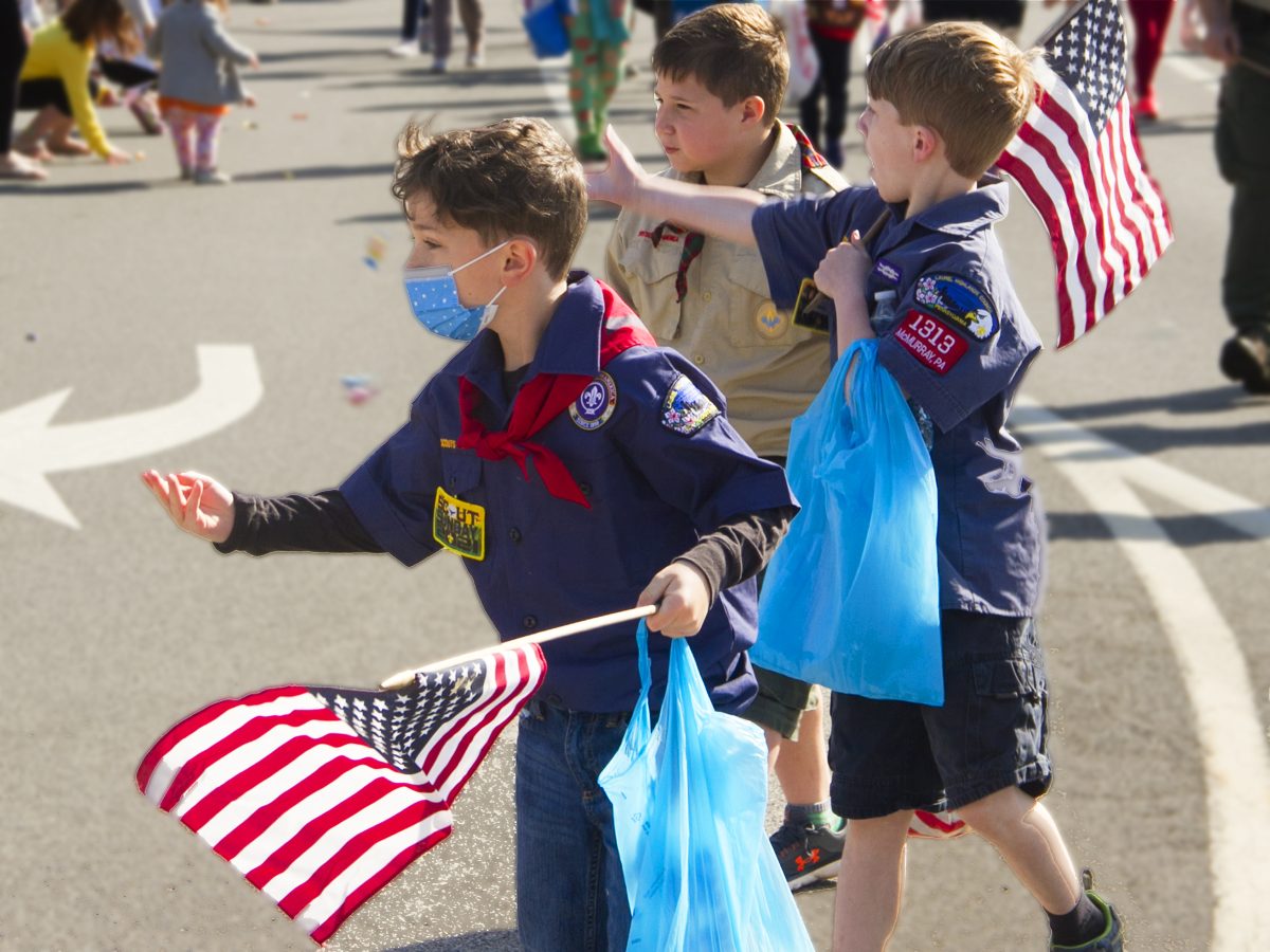 Scouts from Pack 1313 and Troop 1313 toss candy to young parade observers.