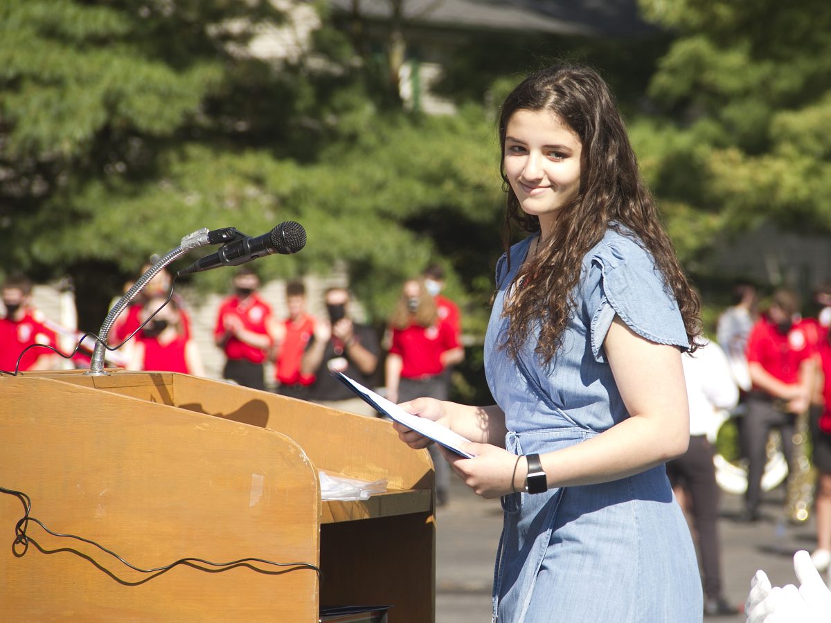 Allison Bentz finishes reading her first-place Patriot’s Pen essay.