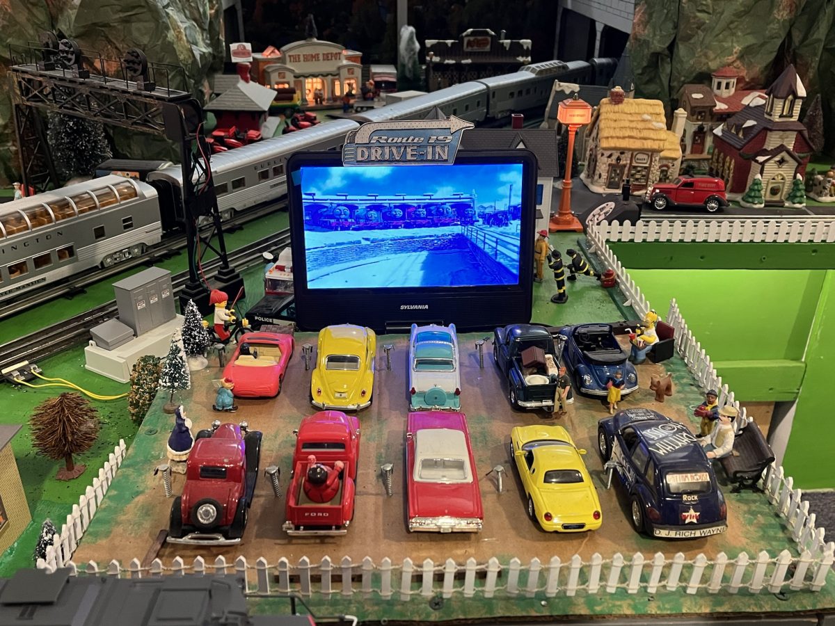 A drive-in movie theater is one of the displays visitors will see at the Train Gang of Washington County holiday display at Washington Crown Center.