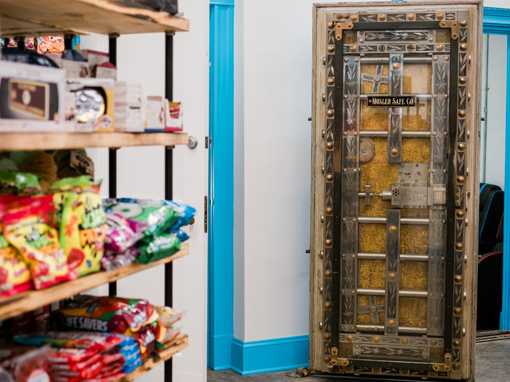 Inside one vault is a 75-inch flat-screen TV, for gaming, and the other is stacked floor-to-ceiling with safety deposit boxes. Loyalty customers will receive keys to the boxes, where a prize sits waiting to be opened.