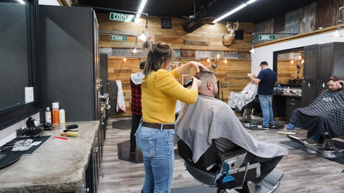 The shop now has five full-time barbers. Brown will eventually become its sixth. But for now she is working part time three days a week.