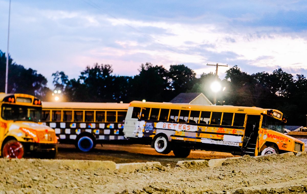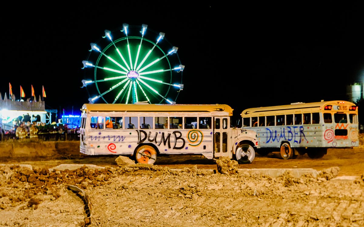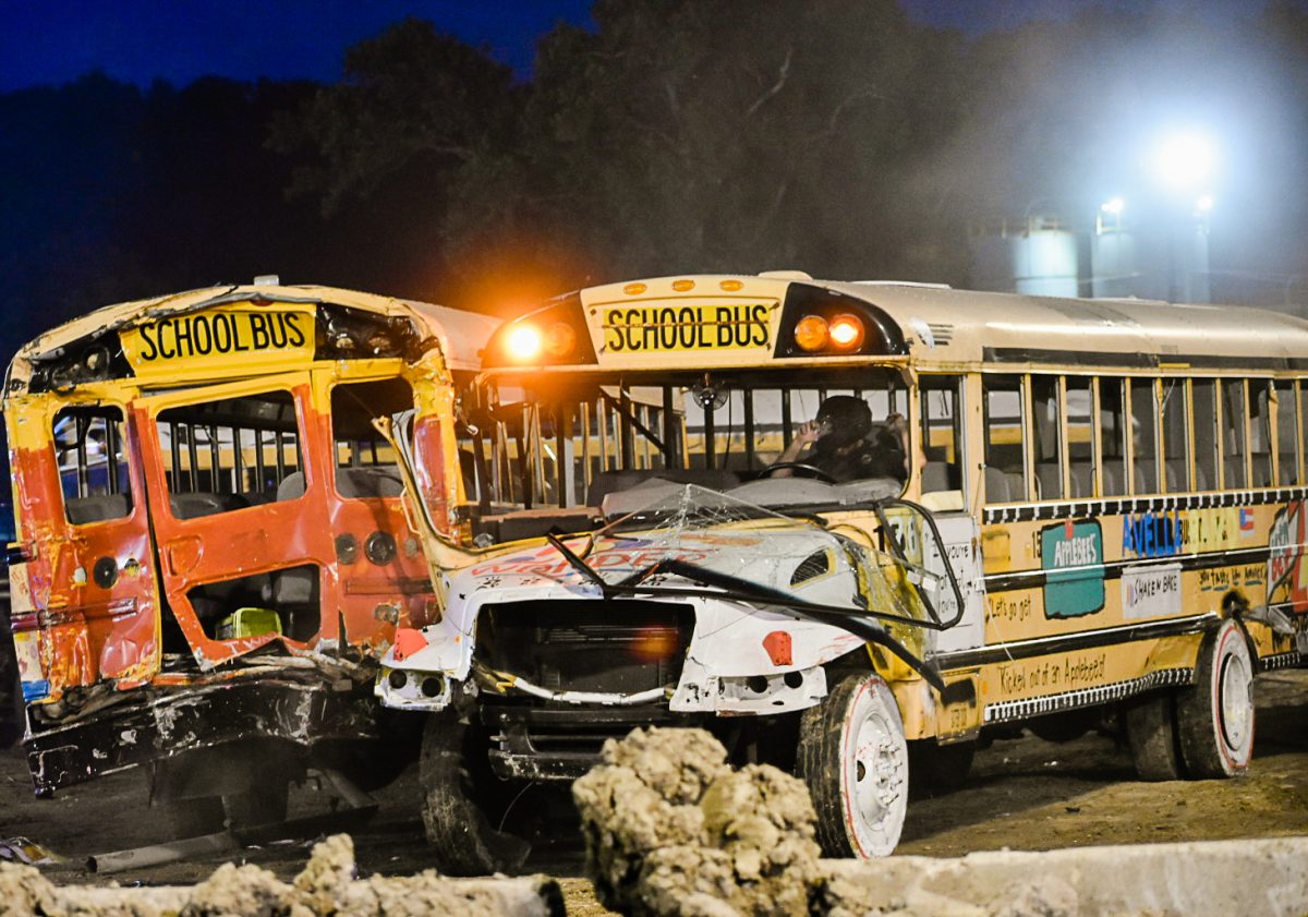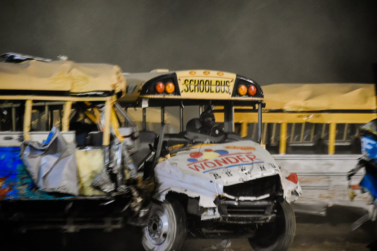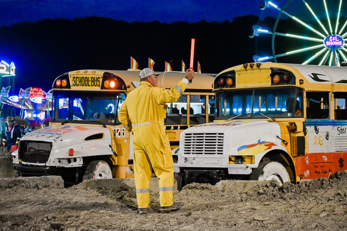 Crowds remained enthralled by the derby from sunset to dark, erupting in applause when buses teetered on their sides or doors fell off their hinges. The school bus demolition derby is one of the biggest event attractions, Hunnell said, and Wednesday marked the fair’s largest attendance as of press time Thursday.
