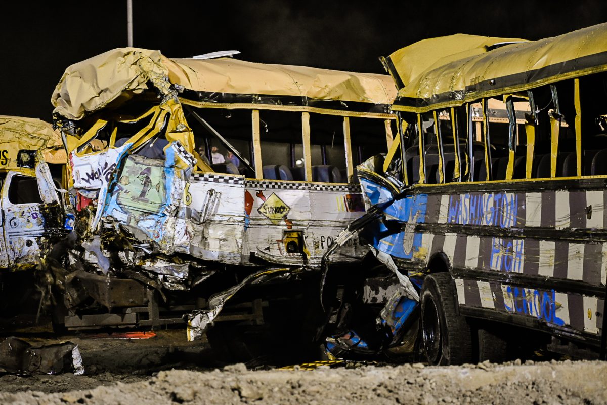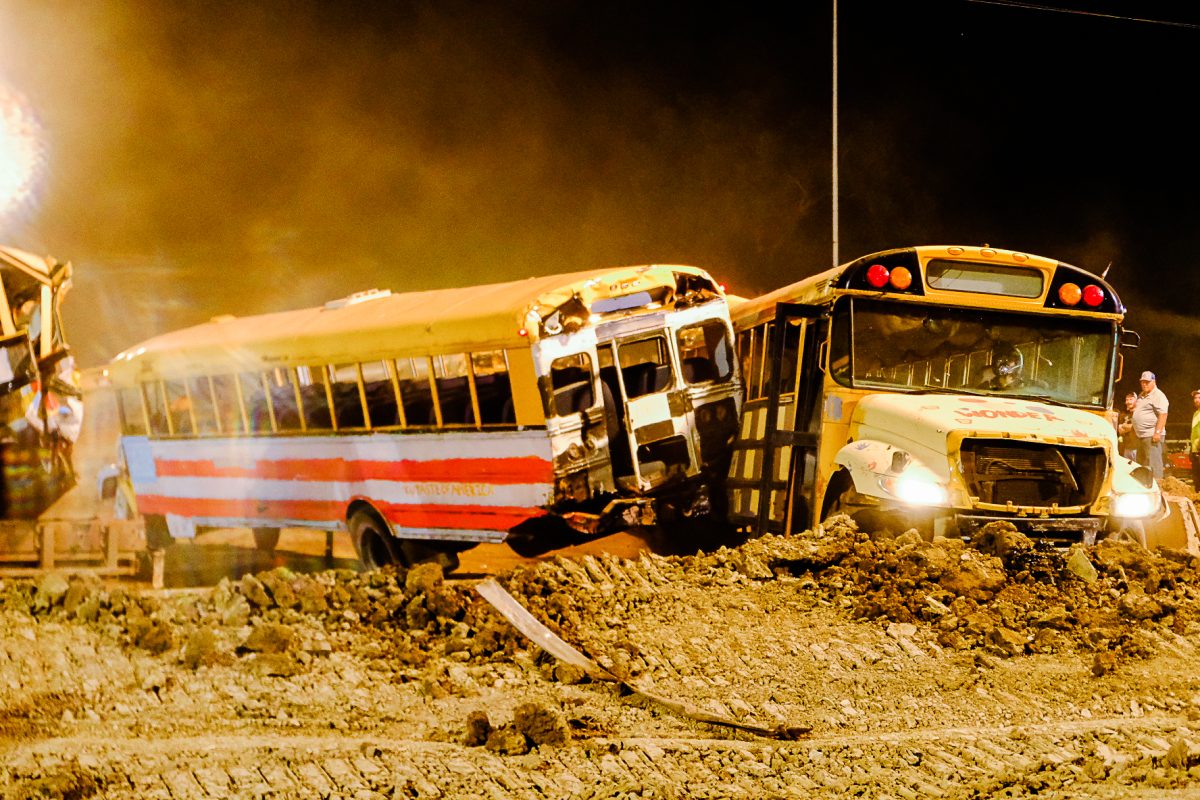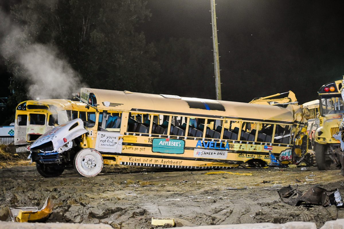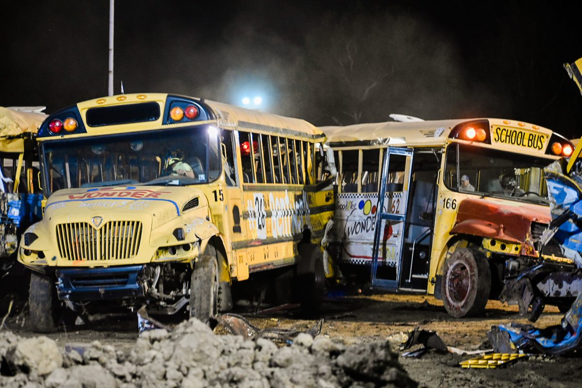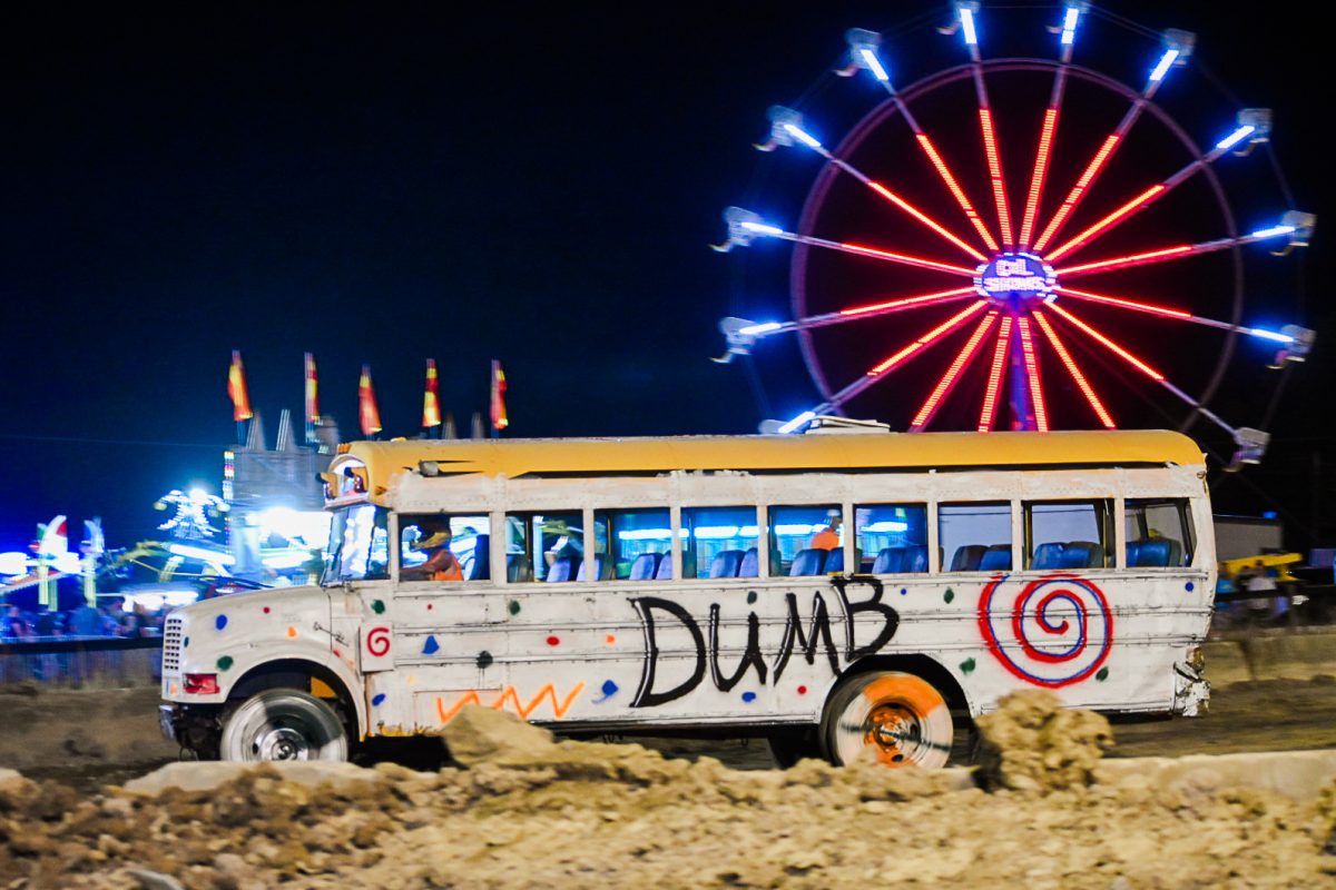 Crowds remained enthralled by the derby from sunset to dark, erupting in applause when buses teetered on their sides or doors fell off their hinges. The school bus demolition derby is one of the biggest event attractions, Hunnell said, and Wednesday marked the fair’s largest attendance as of press time Thursday.