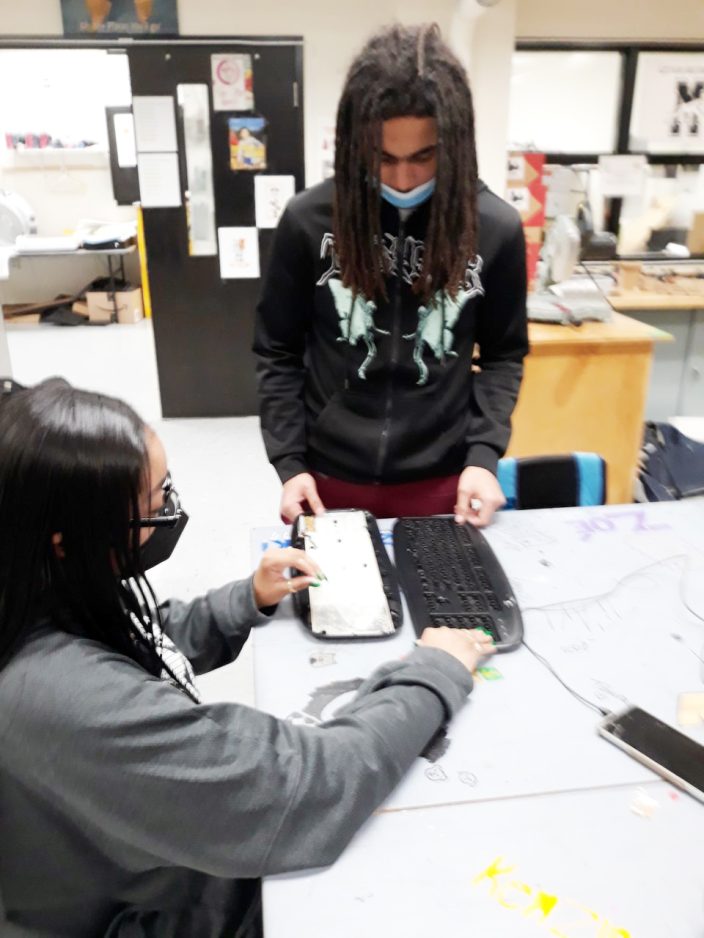 The students are working to create a keyboard overlay that will have touch features for key recognition, and then audio as well to ensure she is typing the correct letters each time.