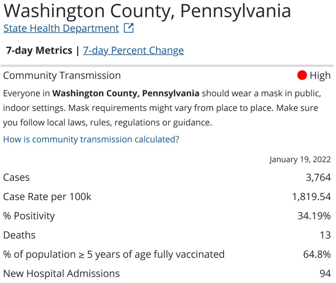 - Masks are required indoors in all district facilities when Washington County is in the high level of community transmission.